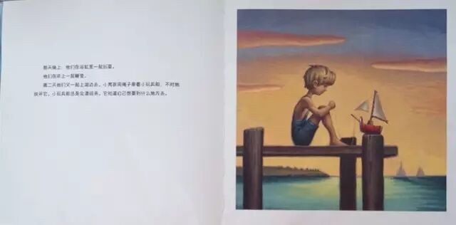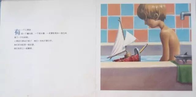 有一个小男孩,用一个罐头瓶、一个软木塞、一支黄铅笔和一些白布,做了一只玩具船。小男孩太爱这只船了,他们一刻也不愿分开。他们在浴缸里一起玩耍。他们在床上一起睡觉。