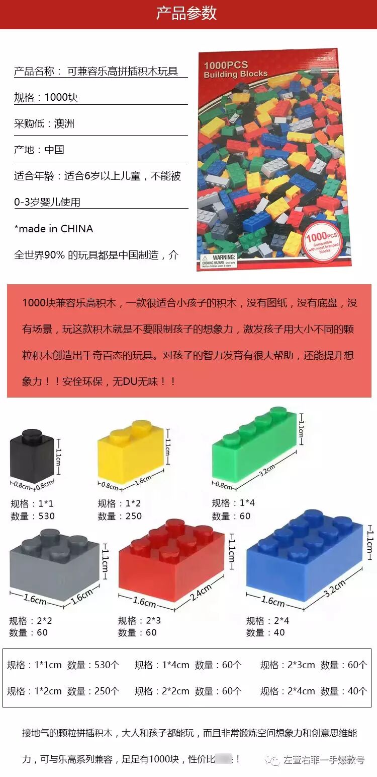 澳洲building blocks 乐高儿童积木,1000块装。国内同品牌100块装的都100人民币出头 。有想要的,抓紧买 就这么点货 卖完就没有了。 积木可是好东西,到现在自己慢慢开始动脑堆房子,真的是成长中不可缺少的玩具。