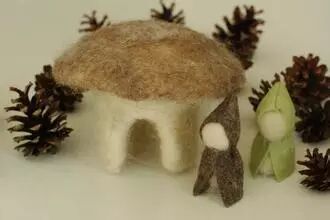 我们希望给孩子非常简单的素材,让他们能够创造出他们自己的玩具。在我们的园里,您会看到一篮子的石头,一篮子的贝壳,一篮子的木块,有时候孩子们要老师帮他们锯小木块,然后他们就会拿砂纸来把这些木块磨光滑...,父母们也许不清楚这些来自大自然世界的素材是多么的可以鼓舞幼儿身心健康的发展。在我的经验里,如果一个幼儿的玩具都是塑料或是合成品的材质,那么游戏的情境就会变得不太一样,孩子会变的比较尖锐,比较攻击性。因此我们要尽量给孩子们棉质的或是丝绸的或是来自凉爽环境的羊毛或是亚麻,黄麻等自然的材质,您知道吗?对孩子们的手感而言,这些来自自然的和那些合成的物质是多么的不同!我记得曾经在一间店里要买些线给娃娃做头发,我一看这店里卖的几乎全是合成品,唯一我想买的天然材质的线竟然在拍卖,我问店员为什么这线拍卖得这里便宜,他说:「因为我们不再卖那种羊毛线了,以后我们只卖合成线。」听了之后,我告诉他我觉得很可惜,因为我比较喜欢自然的材质,他看了看四周,然后说:「对啊,可不是?天然的材质让人觉得有生命。」