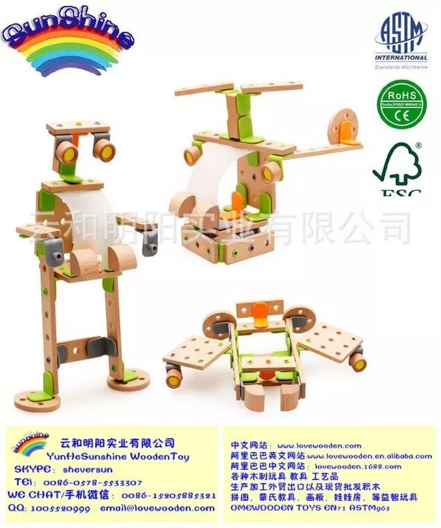 云和明阳实业有限公司主要加工生产经营批发木制玩具。主营产品有积木、拼图、绕珠、拼拼乐、迷宫、多米诺、过家家类、螺姆拼装、技巧球、孔明锁、音乐盒等益智早教木制玩具。