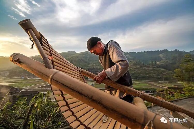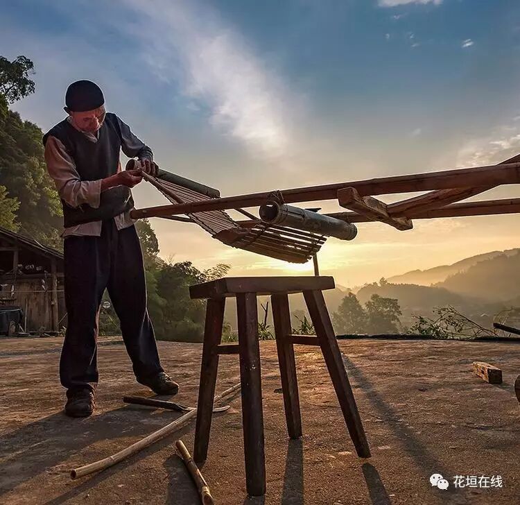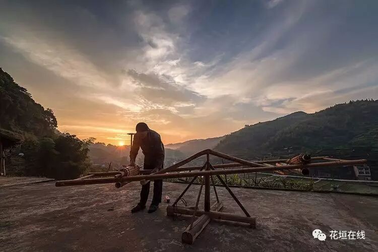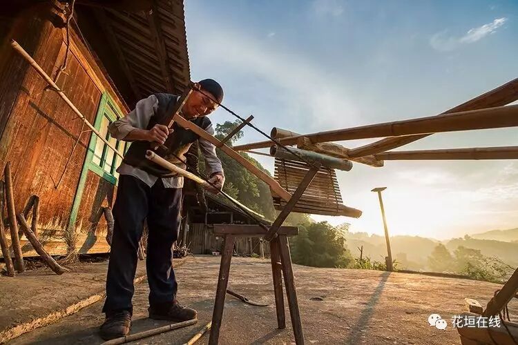 这些东西除了主杠是木头,其余构件全是竹料做成。看上去,这个东西有些年纪,竹子上的榫头有的已经不牢靠,刚才我就把一个榫口搞开裂了。老人找来锯子,重新做了构件,又找来铁丝,把一些紧要榫口扎死。