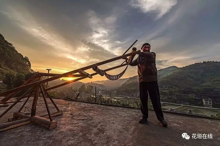 为寻找最佳拍摄点,我爬向寨子的最高处。说是爬,其实是小跑,好在各户门前,都有水泥路相通联,眨眼之间,我就来到了目测的制高点。一排木屋,一个宽敞的大坪场,不仅正对着东方,而且整个寨子田园,全在视野之中。正忘情地拍摄,一位老人从堂屋里走了出来,观察了一会,就匆匆进屋。我也没有在意,打电话叫还在老乡家里酣睡的同伴,叫他赶紧起来拍日出。