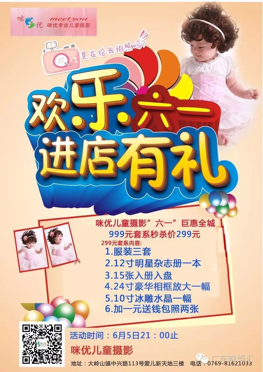 大岭山咪优儿童摄影郑重承诺:本次活动所有赠品,全部免费!此信息真实!有效!亲们,赶紧行动哦!大岭山咪优儿童摄影【六一万人感恩会】更多优惠!更多惊喜!请阅读以下内容: