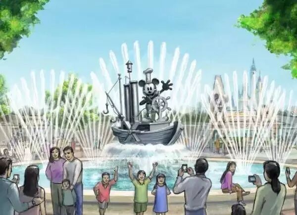 蒸汽船米奇喷泉 位于乐园入口处,指引游客进入“米奇大街”。