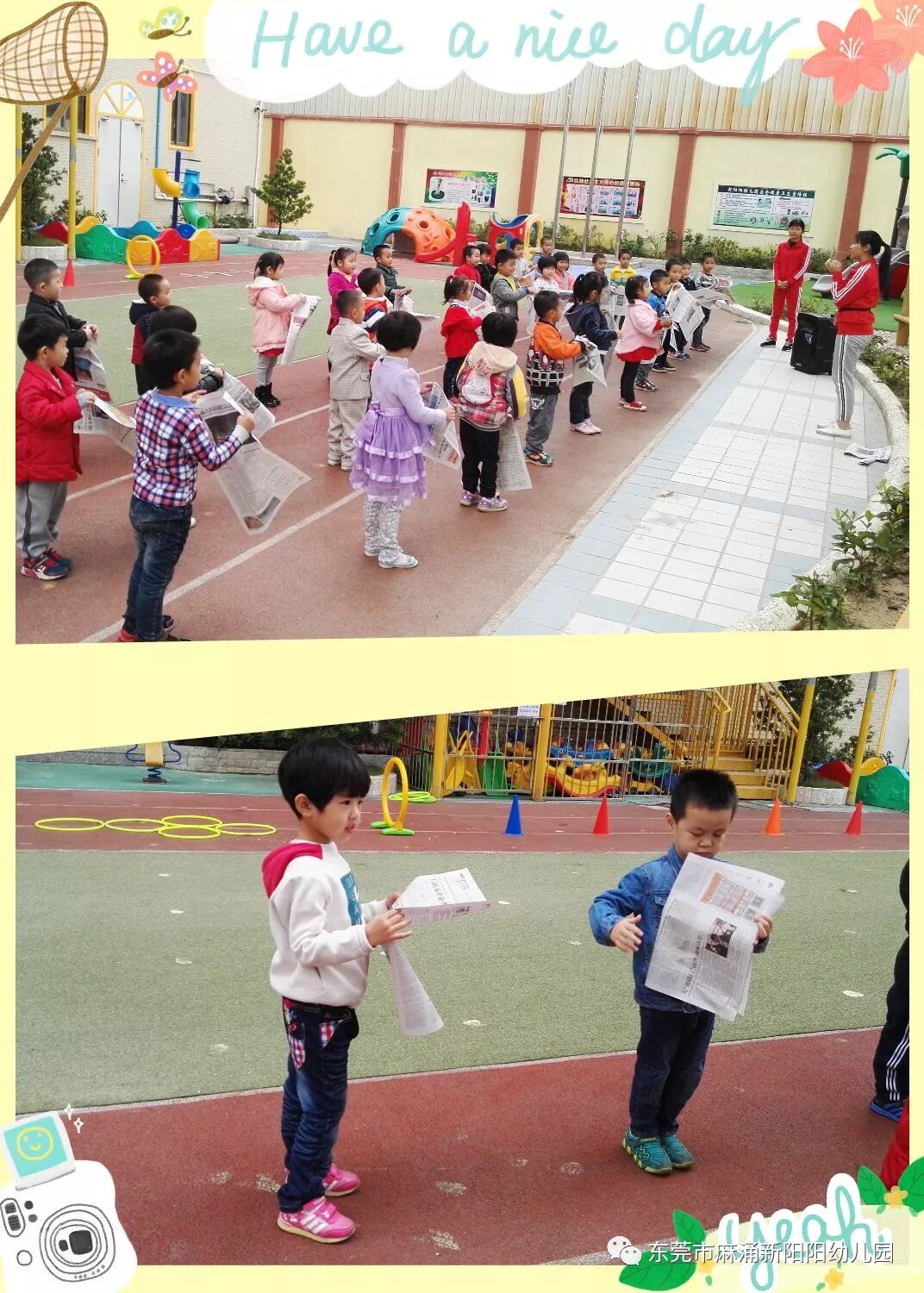 接着,老师给每人发了一张报纸。一张普通的报纸可以变什么呢?变,变,变,老师把报纸变成了一颗球。我们自己也来变一变。1、2、3、4、5,五秒后大家都把报纸变成了一颗球。来、来、来,我们一起来踢球,找到自己好朋友,你踢给我,我踢给你。大家都玩的不亦乐乎。