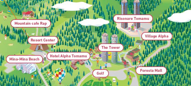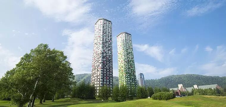 塔娃大酒店由两栋 36 层的高楼组成,从腹地延伸至天空,是Tomamu度假村内最明显的地标,交通方便,距离美食街和GAO户外中心很近。酒店于2006年时改造,原本棕红色的大楼外墙经过设计之后焕然一新,展现出 Tomamu 四季分明的美。划过天际的至高之处为白色,让人联想到冬季盖满山头的白雪;接近地面处则使用夏季森林的绿色;中间缀以错落的红色,象征着春秋两季的花朵与果实。