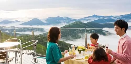 ▶在森林餐厅享受餐食,在微笑海滩体验亲子时光,在水之教堂感受浪漫,在云海餐厅触摸天空;