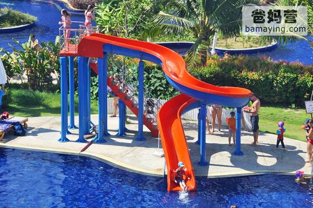 亲子酒店是对服务要求很高的,因为孩子娇嫩、要求多。这家酒店虽然不算规模很大,可是竟然有有7个户外泳池都带不同的滑梯!还有一个给小小孩的0.4米户外泳池,还有大量泳池玩具!