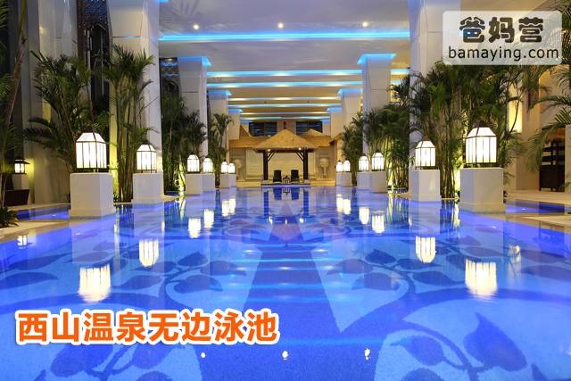 这里有桑拿、无边际泳池、奇异泉、药泉、漂浮泉、亲亲鱼、儿童池、精灵池、瘦腰池等,室内和室外特色温泉池共30个。