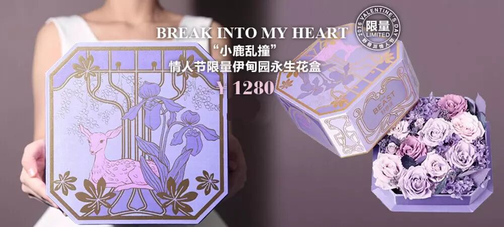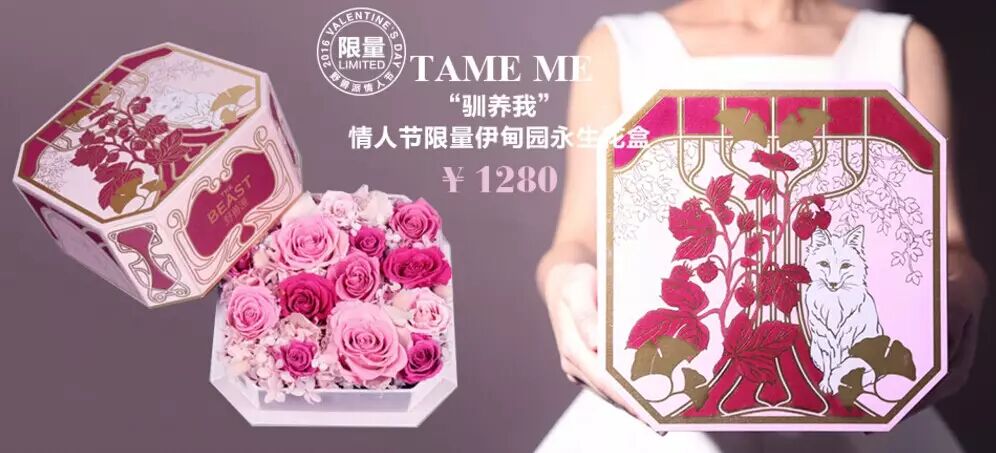 还有两款野兽花盒,草莓树后的小狐狸,爱情口号是Tame Me(驯养我);兰花旁的小鹿的爱情口号是Break in My Heart(小鹿乱撞)