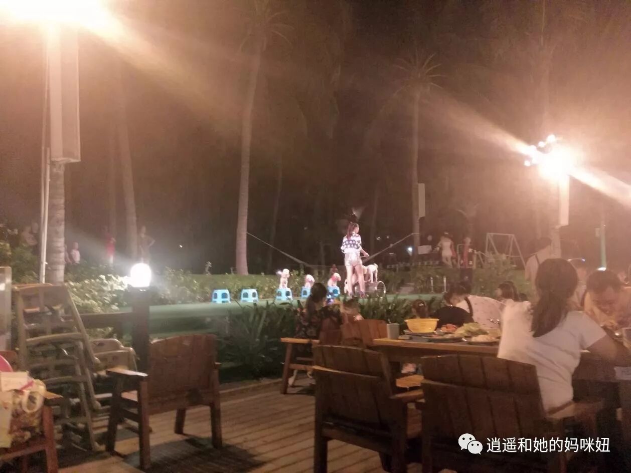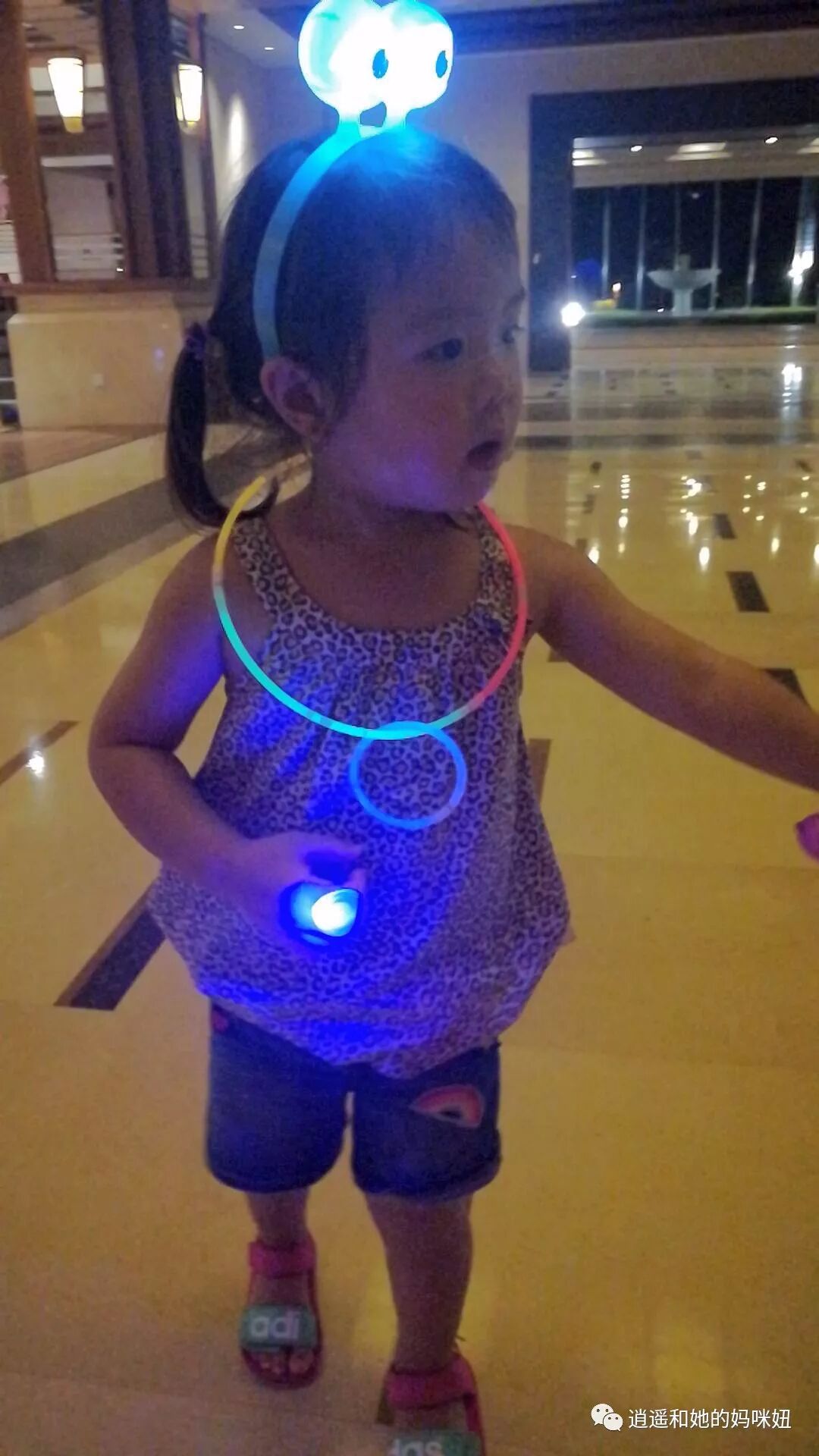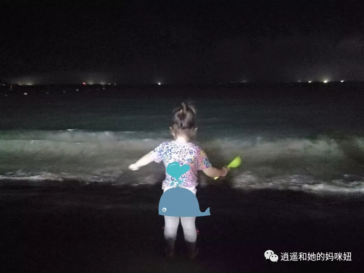 晚上带她下楼到海边挖沙子,沙滩边都是酒楼大排档,大东海这边很热闹。只是跟酒店比,还是酒店比较方便,小孩子玩的东西也丰富些。