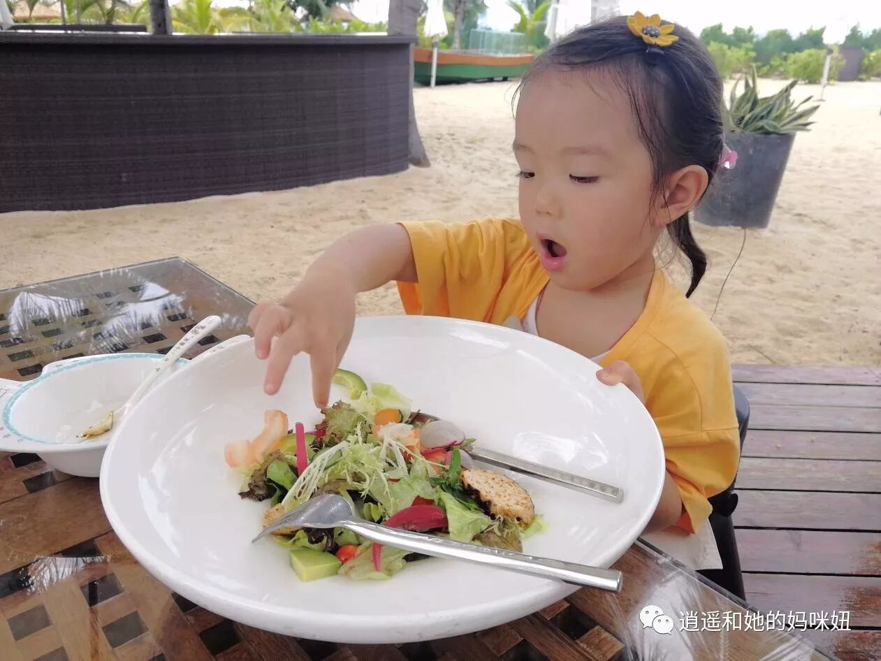 上个月我又带着她去了三亚,一个人带孩子度假有一点特别烦人,就是点菜的时候不能多点几样吃,所以出门我最喜欢选的就是自助。
