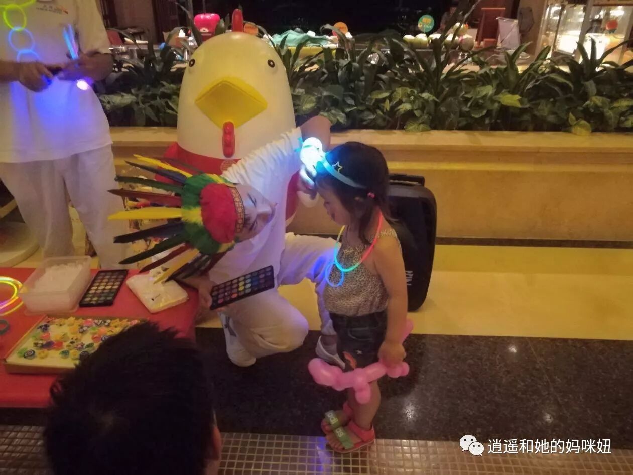 。天域是以“亲子+高性价比”出名,酒店有2个儿童泳池,4个大泳池,一个环漂,4个水滑梯,一个动物园可以买食材喂动物(羊驼,小马,孔雀,鸵鸟之类),一个儿童乐园,除此之外每个餐厅里都有一个小型游乐区,走廊有各种摇摇车,动物电动车,室外小火车,户外草坪上也到处都是健身器材,各种秋千椅,睡床,绳索滑道,攀爬架,滑梯。。。而且沙滩细软,绵长宽阔,有免费的儿童挖沙工具可以租借,实实在在的是走到哪就玩到哪,项目多的都玩不过来。然后,每天还有日场和夜场的亲子活动,日场的基本是免费的,夜场的需要收费。