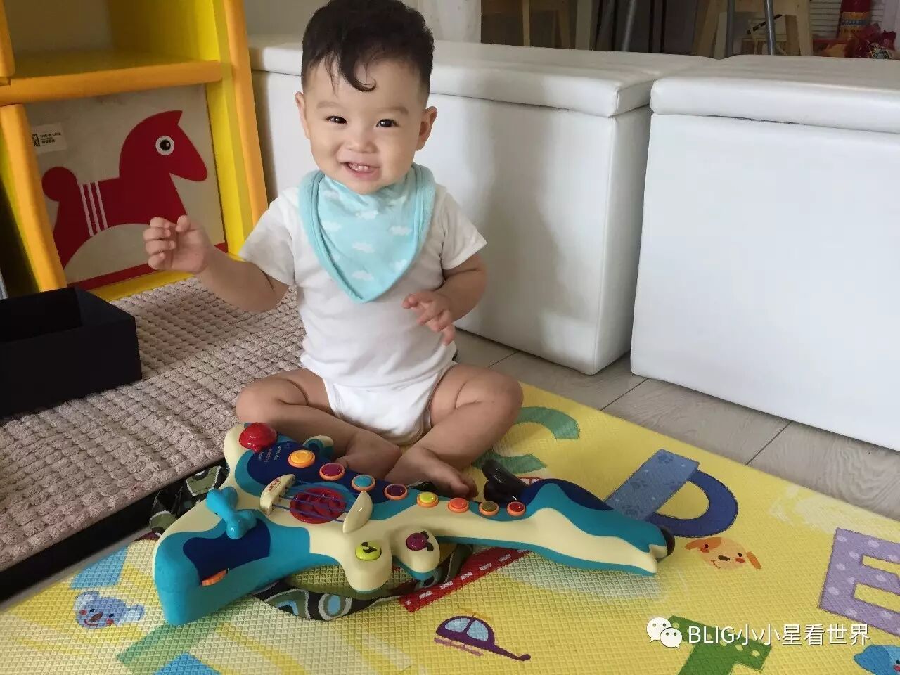 本周三咱们有B.toys专场团购,其中就有这款狗吉他。详情见9月20日预告|美国大牌B.toys四款明星玩具:软积木,小狗吉他,回力车,触感球,小星最爱,款款经典!