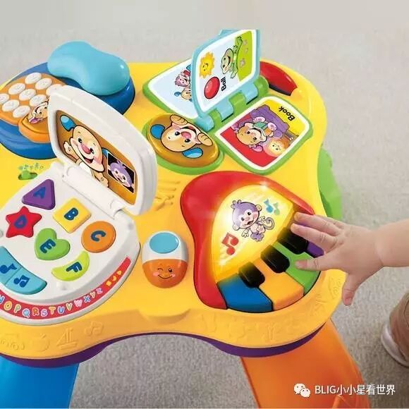 虽然功能并不是很多,但是小小星却很爱,主要是可以通过自己的翻页、滑动等发出灯光、音乐和中英文朗读,高度又正好适合一岁的孩子站在那里操作,主要是刺激宝宝的感官发育以及动手能力。