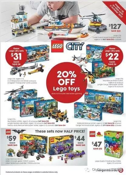 玩具大促开始,乐高系列全场20% off;