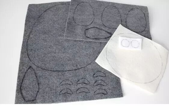 第5步:剪出小肚皮,眼睛,鼻子,和肚皮标志直接追溯到线;