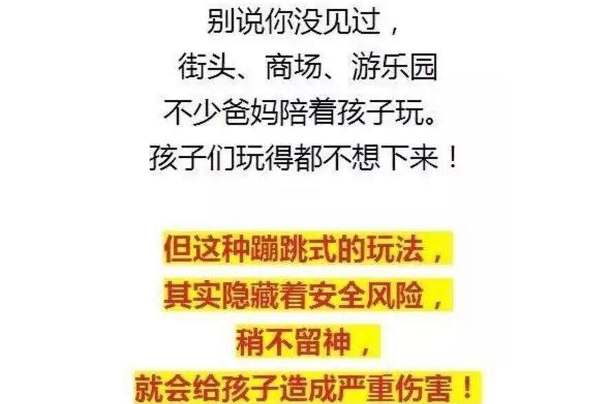 把握孩子的玩乐时间,避免蹦跳时间过长。同时,要随时观察孩子的情况,发现孩子身体出现不适,要及时停止游戏。