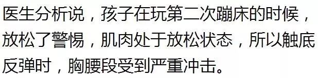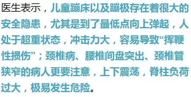 湖北武汉的10岁男孩晨晨(化名)系着安全腰带玩弹簧蹦床,连玩三次之后松掉腰带时,腿部瘫软无力,怎么也站不起来了。