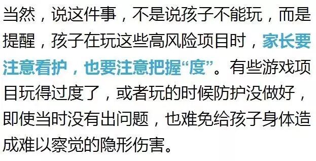 家长应在旁边照看好,严禁孩子趴、骑在护栏上,避免孩子因为激烈奔跑相撞碰伤,或者压伤别的孩子;