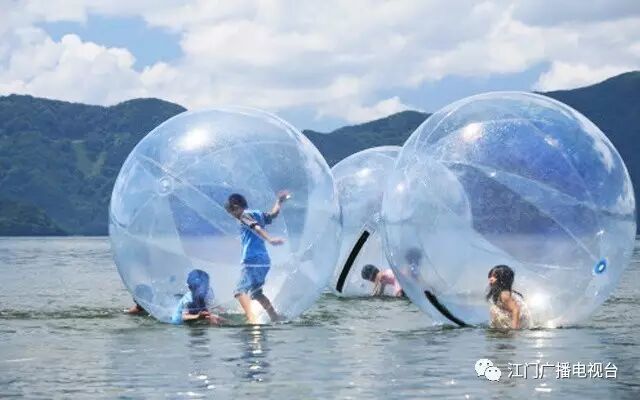 水上步行球项目要求水深不能超过1.5米,但必须深于0.5米,只能在相对静止开阔的水面开展。