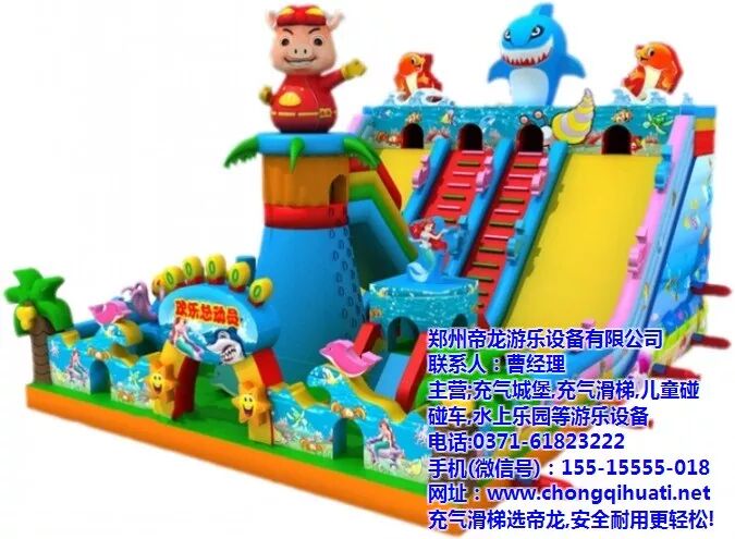 郑州帝龙儿童充气滑梯厂家主要生产销售充气滑梯、大型充气滑梯、充气城堡、充气蹦蹦床、大型儿童充气滑梯、水上乐园设备、充气水池、充气水滑梯、电瓶碰碰车、广场碰碰车等新型游乐设备,公园充气城堡大滑梯,欢迎新老客户莅临选购。由于我公司产品型号太多,本页无法全部展示,您可以拨打电话(15515555018微信同号)联系我们获取最全的产品型号和介绍。