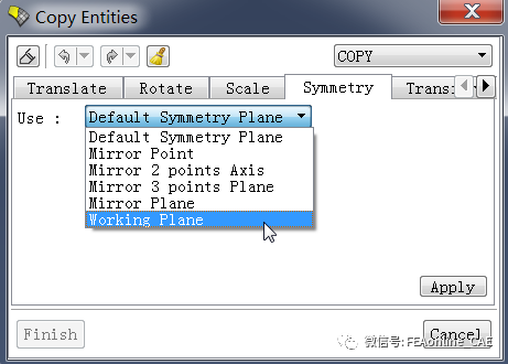 下图是方法⑤,选择Working Plan选项,然后在视图区选择xoy平面,完成复制。
