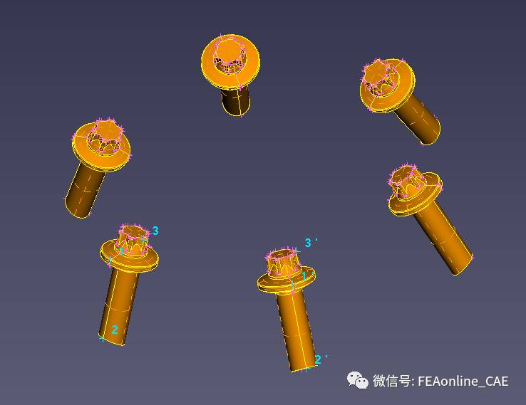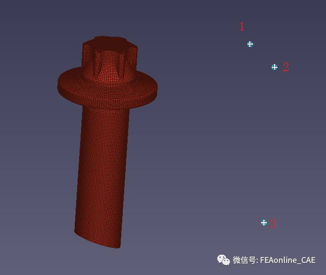 在模型几何上3个不同的点1、2、3,再选择其他相同结构模型上与之完全对应的3个点1’、2’、3’。