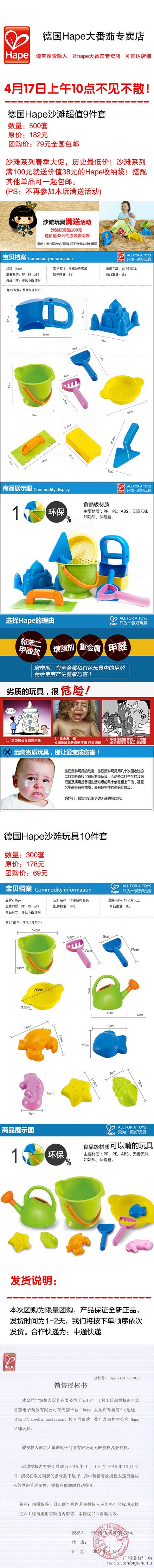 HAPE大热的沙滩玩具,夏天玩沙去海边必不可少的挖沙工具组合,西格的大爱,现在HAPE的这些沙滩玩具在很多游乐场都可看见,做工材质好,无味无毛刺,口碑都不错,69元这套特地把20元的泰姬陵换成了42元的水壶,更实用也更划算,具体介绍和团价看图