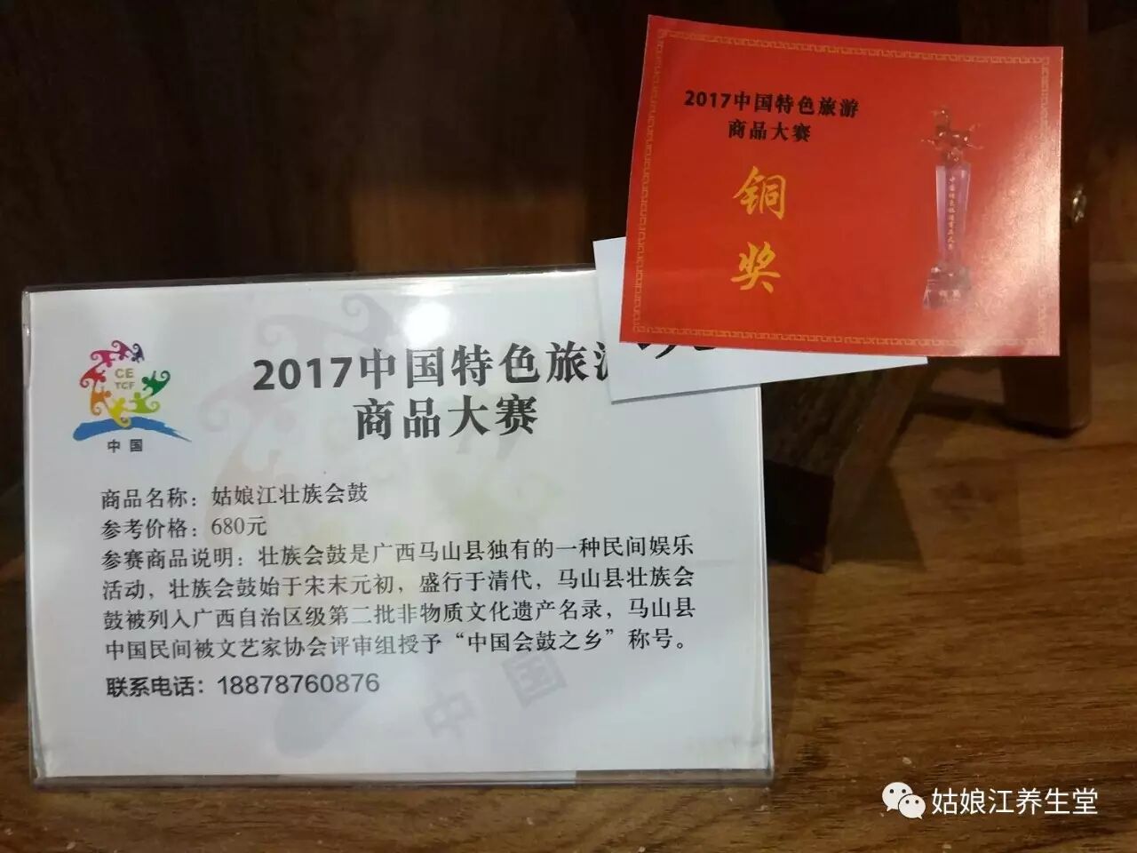 9月伊始,在内蒙古包头市国际会展中心举行的2017中国首届特色旅游商品大赛中,我县代表参赛企业广西姑娘江商贸有限公司选送的“姑娘江壮族会鼓”历经层层筛选,以明显的地域性、工艺性和实用性等特点在全国20大类15000余件特色旅游商品中进行激烈角逐,最终喜荣获铜奖。