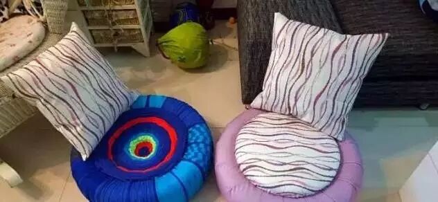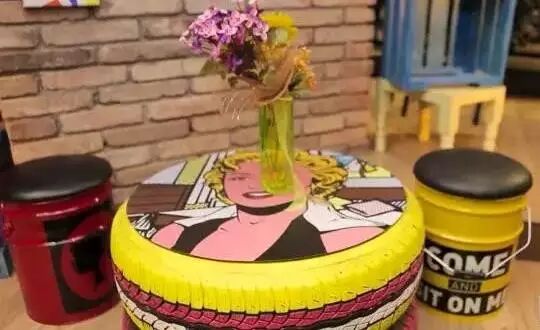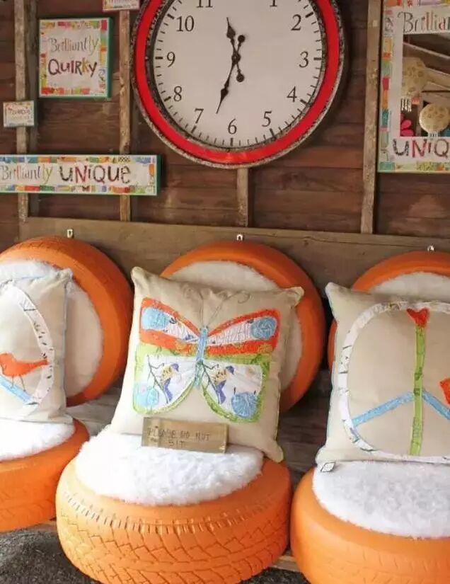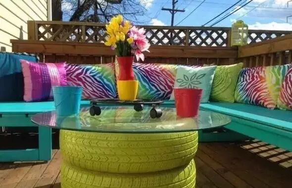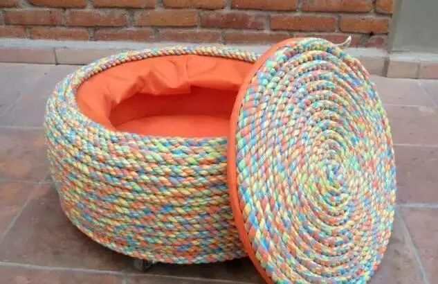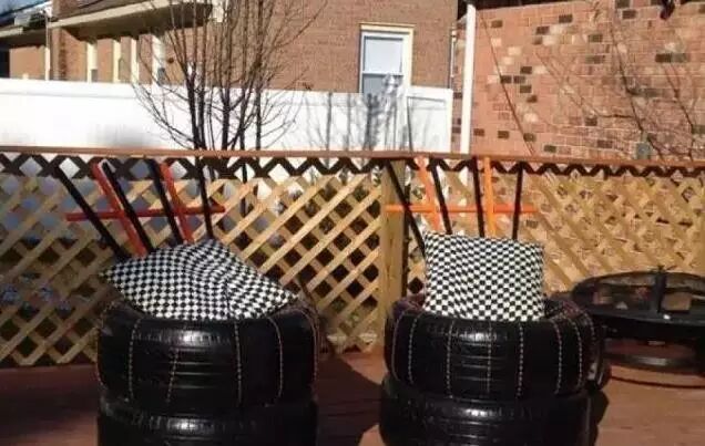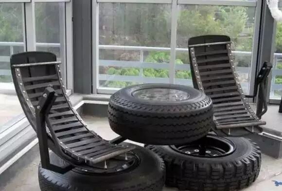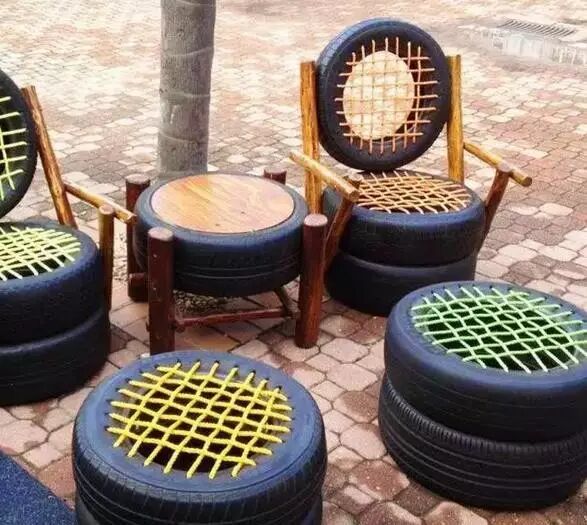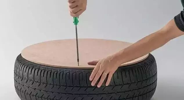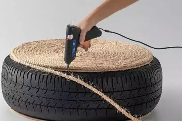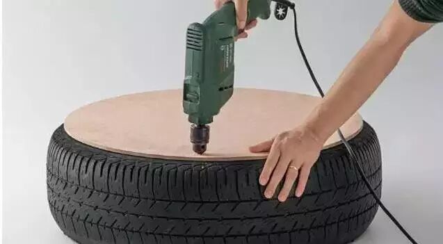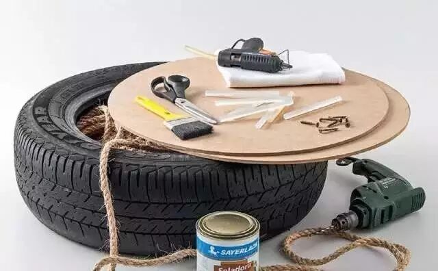旧轮胎,圆木板,麻绳,电钻,热胶枪,刷子