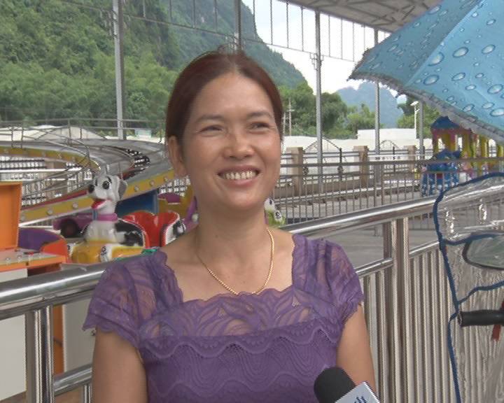 小都百村民 苏庆艳:出去打工也不得了,在这里有家里家务啊什么都自己搞,(离家近)都比较轻松点。这里大人小孩都可以在这里玩,不用去那么远,去马山啊。游客来也可以带小孩(来)这里玩,到星期(周末)才有多人,不是星期(周末)就少一点。