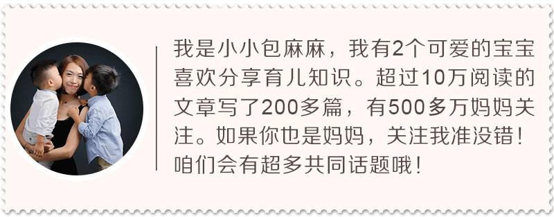 亲爱的,你好!我是小小包麻麻,是两个可爱的宝宝妈妈,目前咱们这个公号已有500多万妈妈关注。