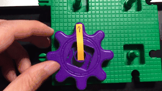 齿轮一共有6种颜色,当将齿轮挨个拼插放好后,孩子一边摇动把手,一边观察齿轮的联动,有的齿轮是顺时针旋转,有的齿轮是逆时针,这个观察的过程对手眼协调性是一种很好的锻炼。