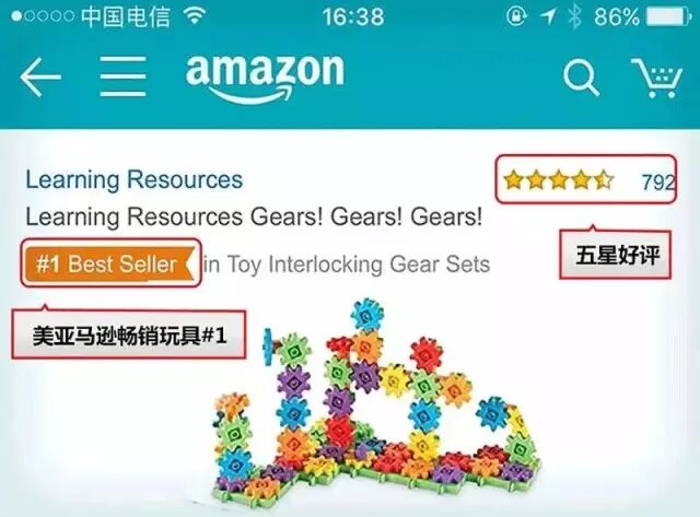 在美国亚马逊上,这款带有缤纷颜色、且会灵活转动的齿轮片玩具长期居于同类搭建玩具销量排行的前列,就连4.5星以上的高分好评都有接近上千条。