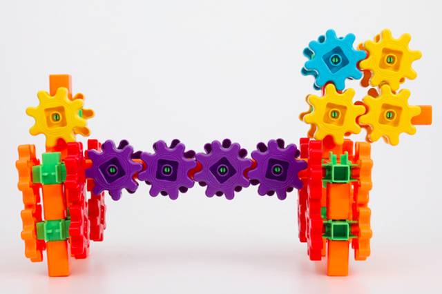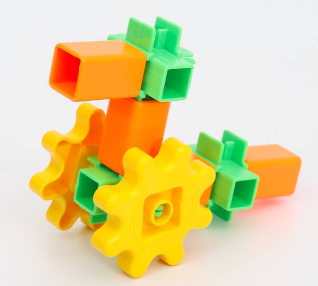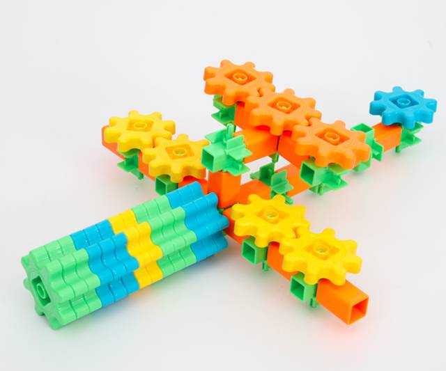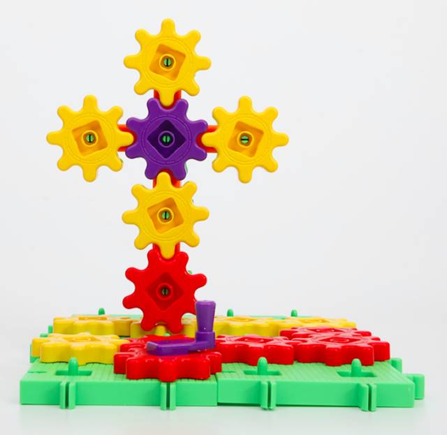 这套齿轮玩具最方便的地方在于所有的配件都是一样的,可以通用,拼装起来很容易。能把这些小积木变出什么花样来,就看孩子的想象力和创造力有多丰富了。