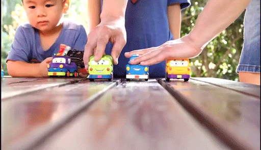 一套特宝儿小车就有6个不用颜色的小车,它们都拥有自己的编号,而这也是它们入库的顺序,妈妈可以根据小车入库顺序帮助宝宝学数字、认颜色,趁机帮他们养成爱收纳的好习惯。